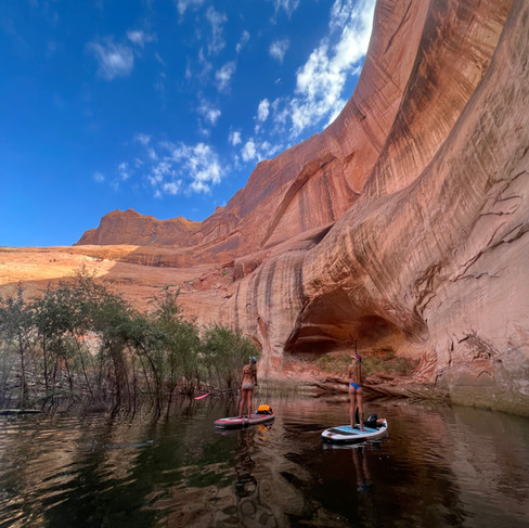 With a large group like ours (I believe there were 10 of us), the pontoon boat was pretty affordable, though overloaded with 10 paddleboards and all of our overnight gear. There is a lot of planning that goes into a trip like this: where to camp, how to navigate the canyons, what to pack. There is no service out on the water so we made sure to have paper maps as well as downloaded maps on our phones. We had a general plan of where good campsites were, as well as about how long it would take to get to some of these checkpoints. We also brought all of our sleeping gear, food, and first aid/emergency gear.